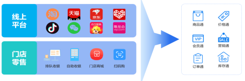 零售管理:多端POS收银、线上线下一体化、会员精准营销、门店智能要货。